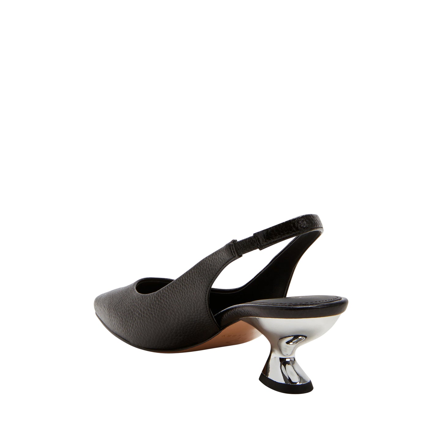 The Katy Perry Laterr sling back in Softy Tumbled has an elasticized strap and square toe that defines this elegant silhouette that's ideal from desk to dinner.